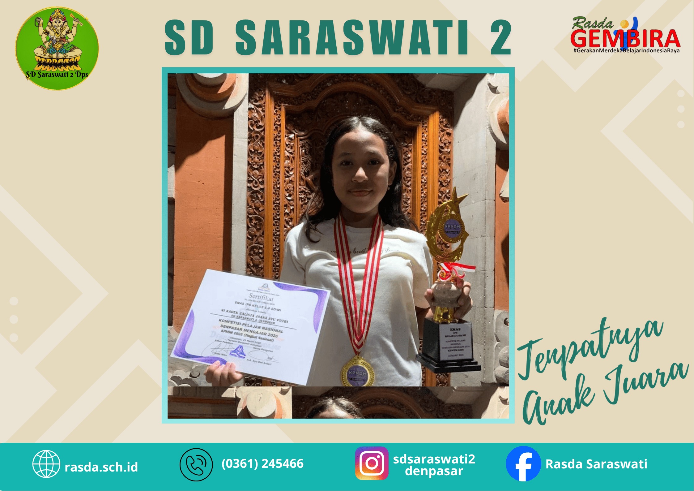 Jangan sampai kelewatan informasi terkini SD Saraswati 2 Denpasar