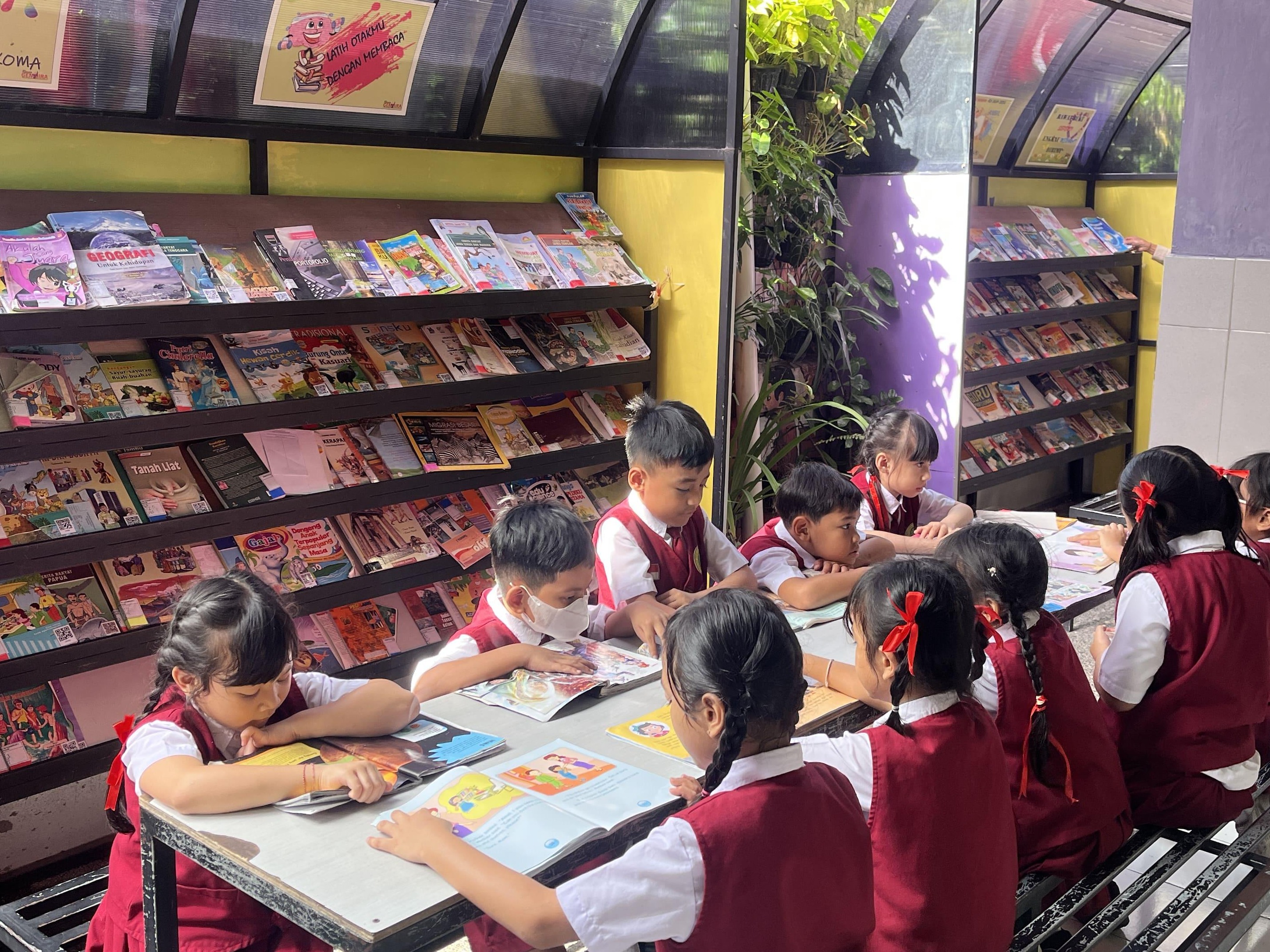 Tidak hanya di perpustakaan, tetapi disetiap pojok ruang kelas juga dilengkapi dengan pojok baca agar siswa-siswi dapat lebih sering membaca buku