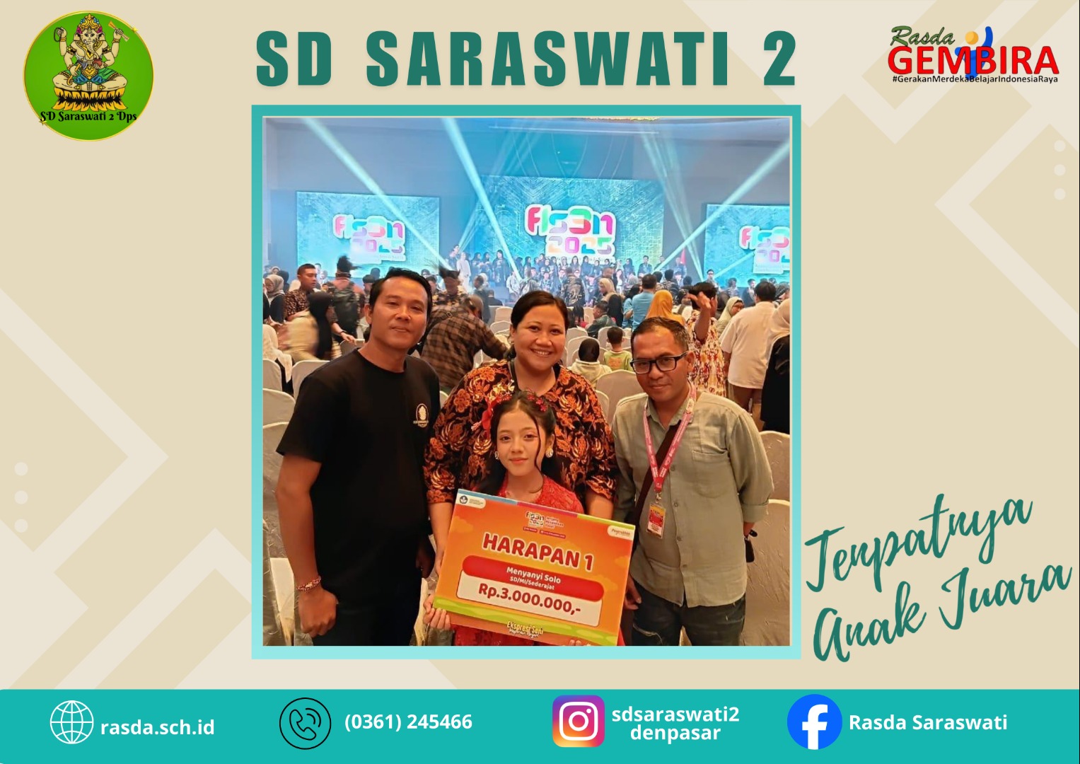 Made Karina Anindya Putri/ IV B meraih Juara 3 Lomba Menyanyi Arunika Kategori A : 7-10 Tahun