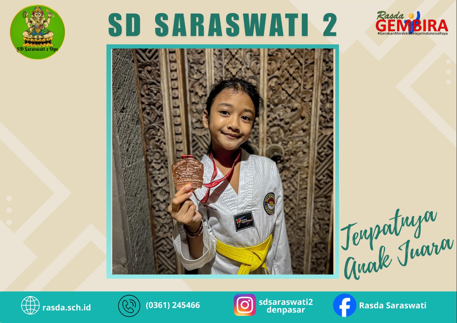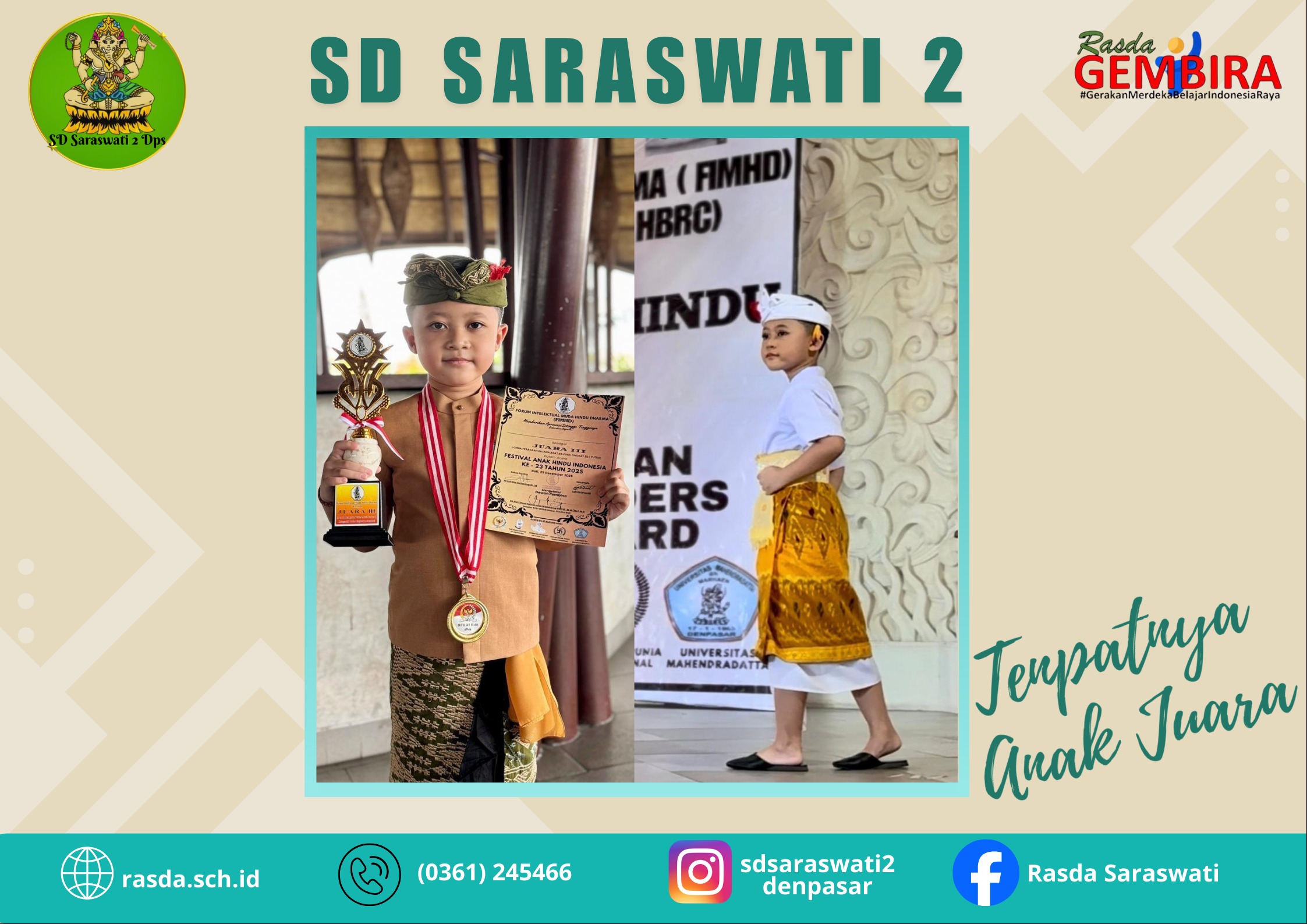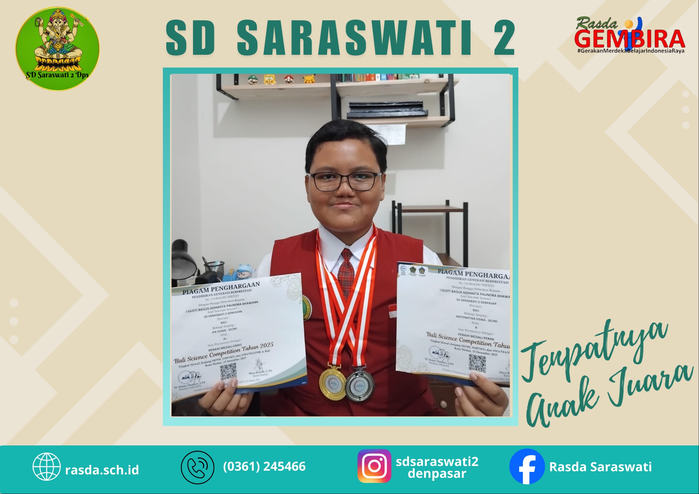 I Gusti Bagus Adhiasta Paundra Bhawana/ V B meraih Medali Emas untuk Lomba IPA dan Medali Perak untuk Lomba Matematika dalam...
